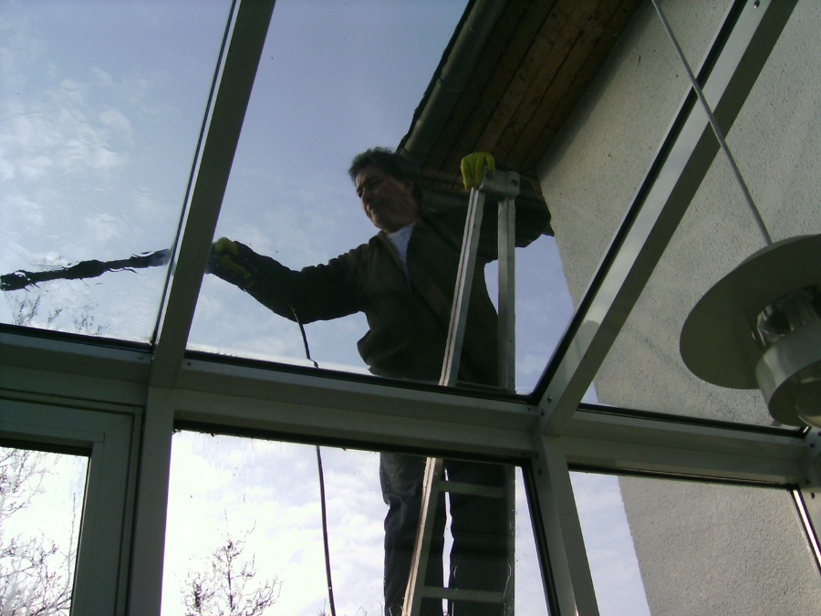 Die Glasreinigung umfasst die Reinigung von Fenster mit Rahmenreinigung und Falz